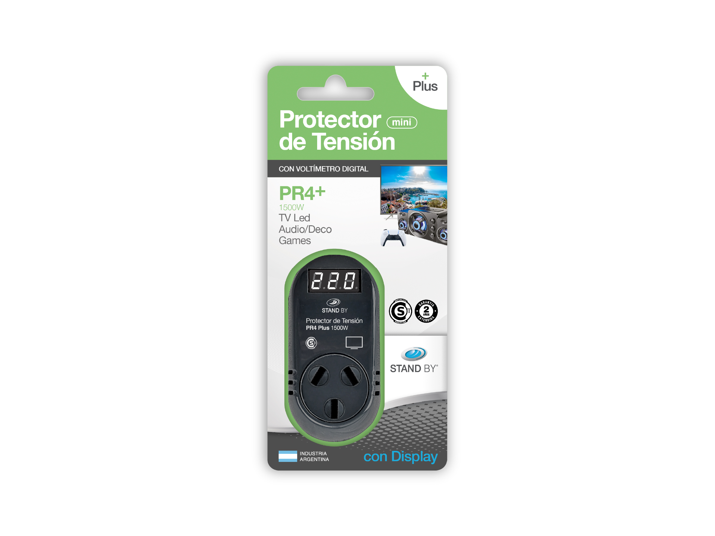 El Protector de Tensión Mini protege la TV de alta o baja tensión, cortes de energía y descargas atmosféricas. Corta el equipo cuando la tensión se encuentra fuera del rango aceptable y reconecta automáticamente ante niveles adecuados. Garantía 2 años. Ventaja: Pequeño, tecnología digital y triple protección!
